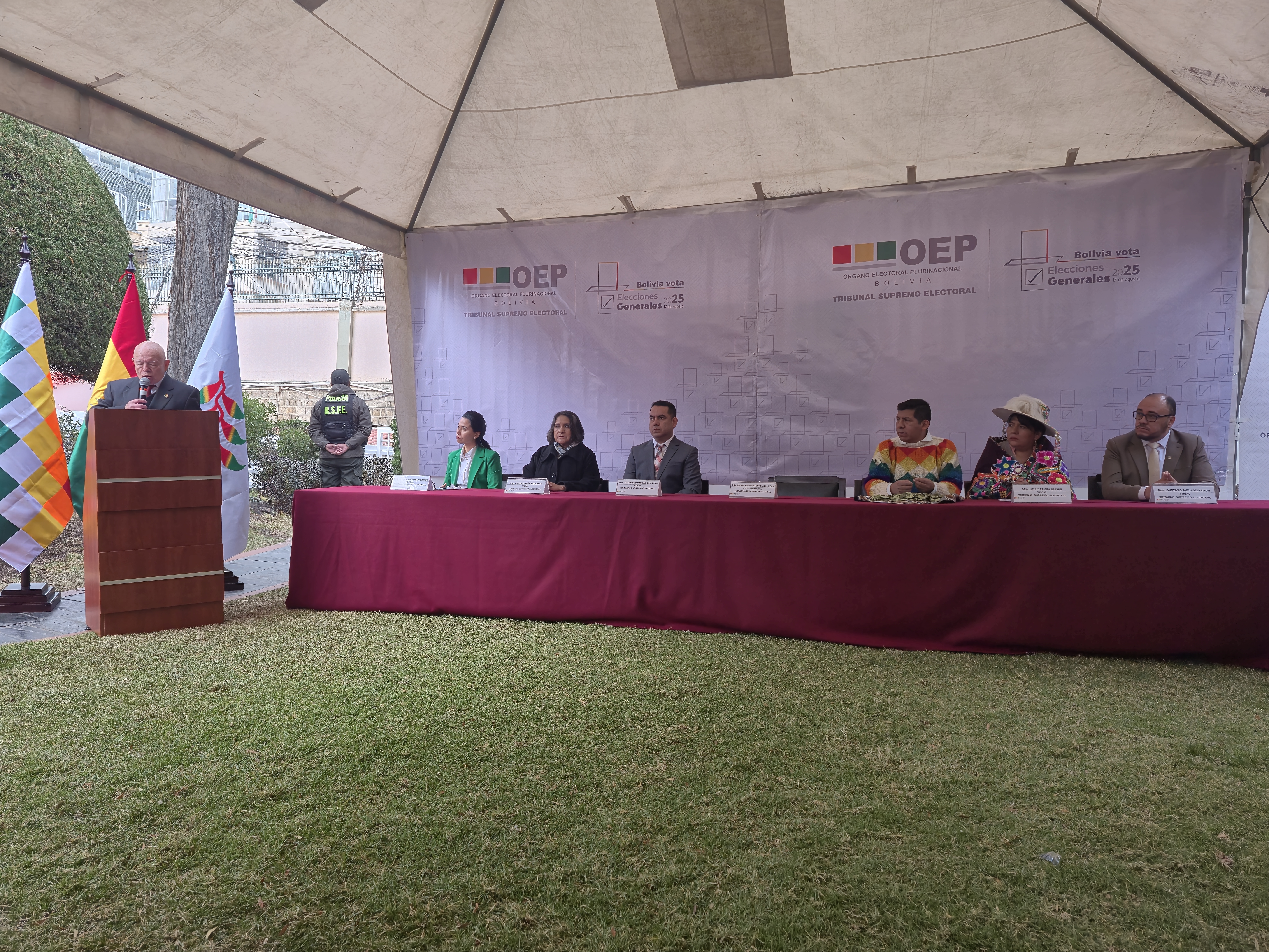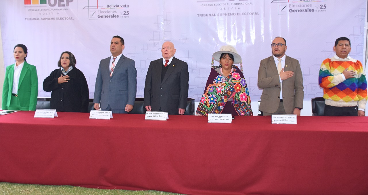 El acto concluyó con un mensaje esperanzador del presidente del TSE: “Que esta jornada sea ejemplar. Que el mundo vea a Bolivia como un país que honra su voto. Con entusiasmo, con respeto y con esperanza, sigamos construyendo democracia”, finalizó.