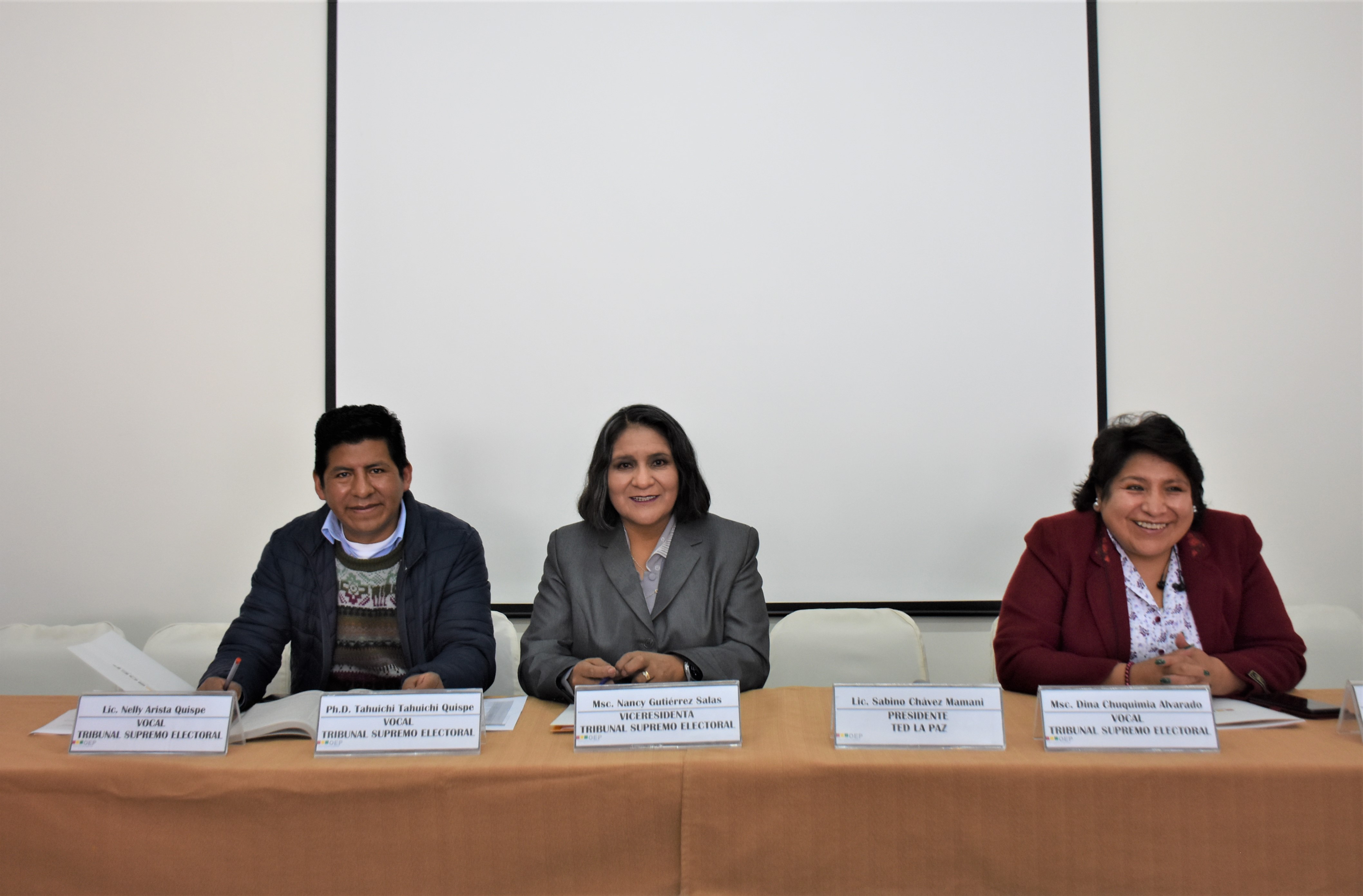 En el evento de inauguración la vicepresidenta del TSE, Nancy Gutiérrez, llamó a la reflexión de los delegados presentes, debido a que tan solo dos agrupaciones ciudadanas en el departamento de La Paz habrían adecuado sus estatutos orgánicos a la Ley 1096 hasta el momento. Explicó que las mesas multipartidarias sirven para intercambiar criterios y autoevaluarse; pero también para que las organizaciones políticas cuenten con insumos que les permitan actualizar sus estructuras orgánicas a las disposiciones normativas.