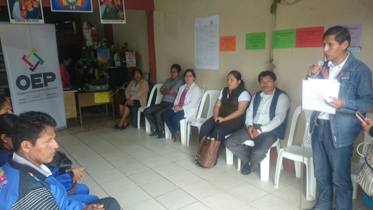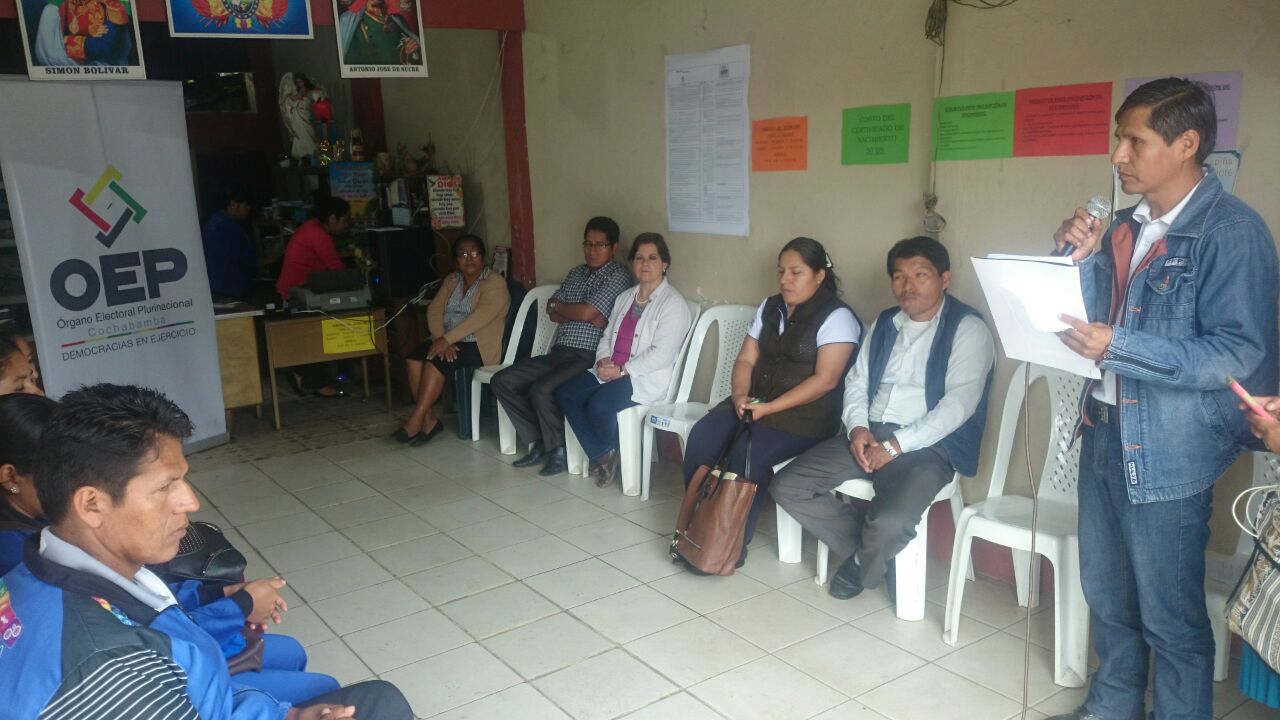 En Cochabamba, donde fueron convocados tres municipios, la inauguración se realizó en Shinahota, hasta donde llegó el presidente del Tribunal Electoral Departamental (TED) de Cochabamba, Delfín Alvarez. La actividad fue acompañada de la Directora Departamental del SERECI, Ana María Villarroel, y la Alcaldesa del Municipio, Matilde Campos, además de las y los concejales.