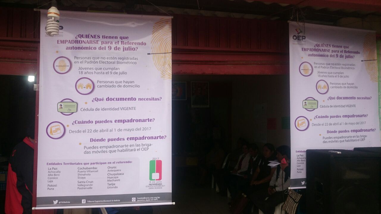 Álvarez invitó a la ciudadanía a registrarse y de esta manera contribuir al fortalecimiento de la democracia al interior de su municipio. Posterior, la comitiva del TED Cochabamba y del SERECI se dirigirá al municipio de Puerto Villarroel donde también se prevé un acto para dar inicio al empadronamiento.