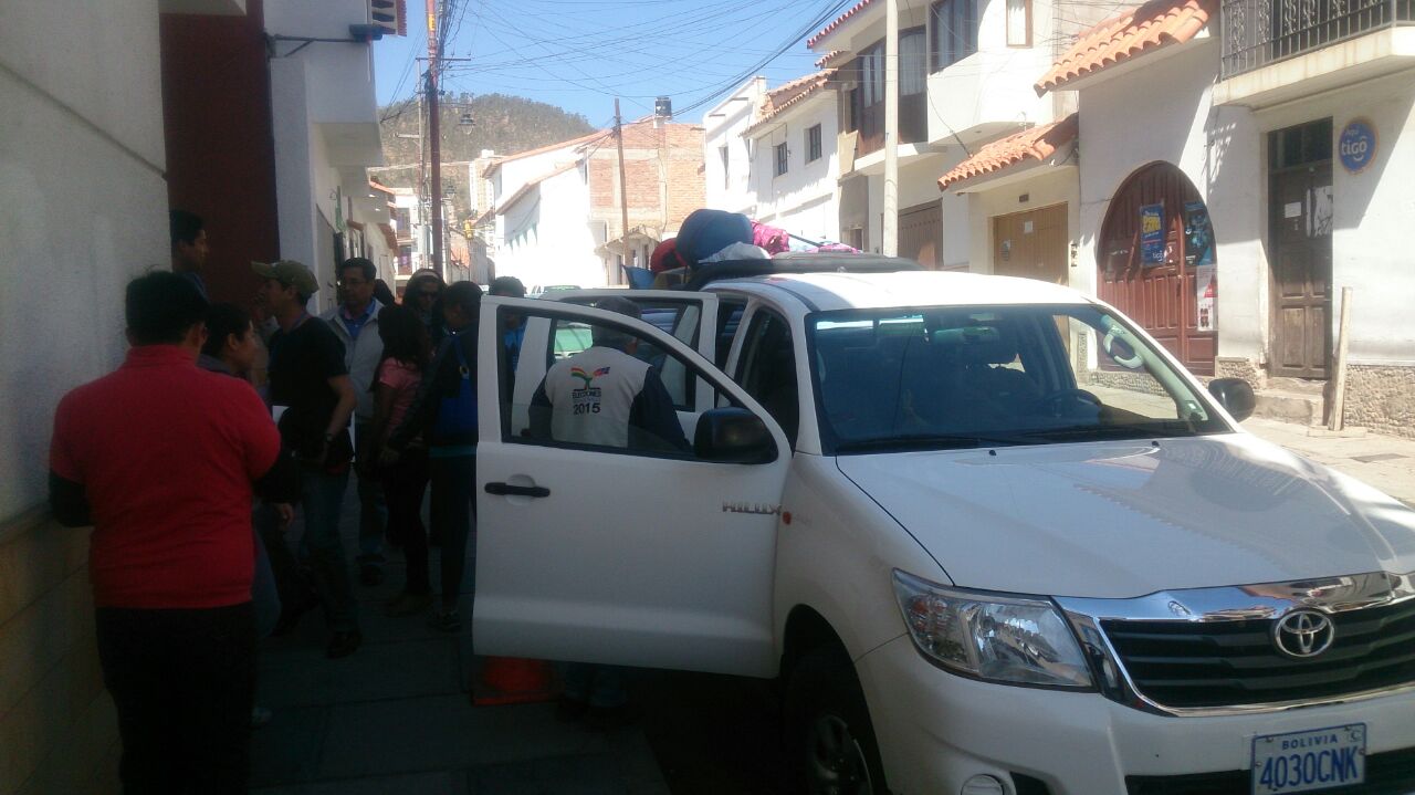 Las y los empadronadores se trasladaron hoy desde las oficinas de los Servicios de Registro Cívico (SERECI) de La Paz, Chuquisaca, Santa Cruz, Tarija, Cochabamba y Oruro, equipados con el material logístico necesario para desarrollar su trabajo.
