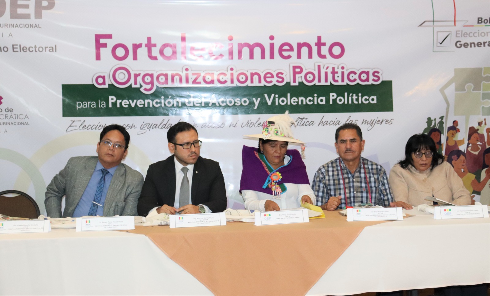 La actividad es impulsada por el Servicio Intercultural de Fortalecimiento Democrático (Sifde) y la Unidad de Género del TSE, y se realiza en el hotel Qhawarina de la capital constitucional del país.