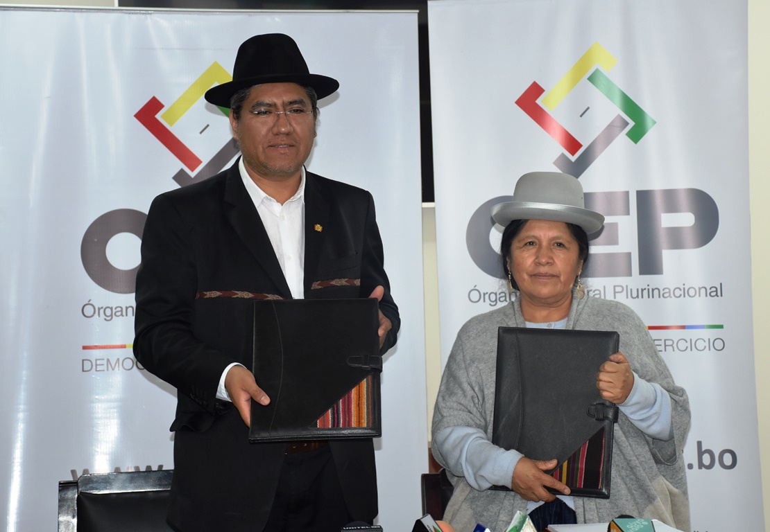 En el marco del convenio interinstitucional suscrito el 27 de octubre de 2015, la presidenta del Tribunal Supremo Electoral (TSE), María Eugenia Choque, y el ministro de Relaciones Exteriores, Diego Pary, suscribieron este miércoles la adenda que renueva el Convenio para el Empadronamiento Permanente de Bolivianas y Bolivianos en el Exterior.