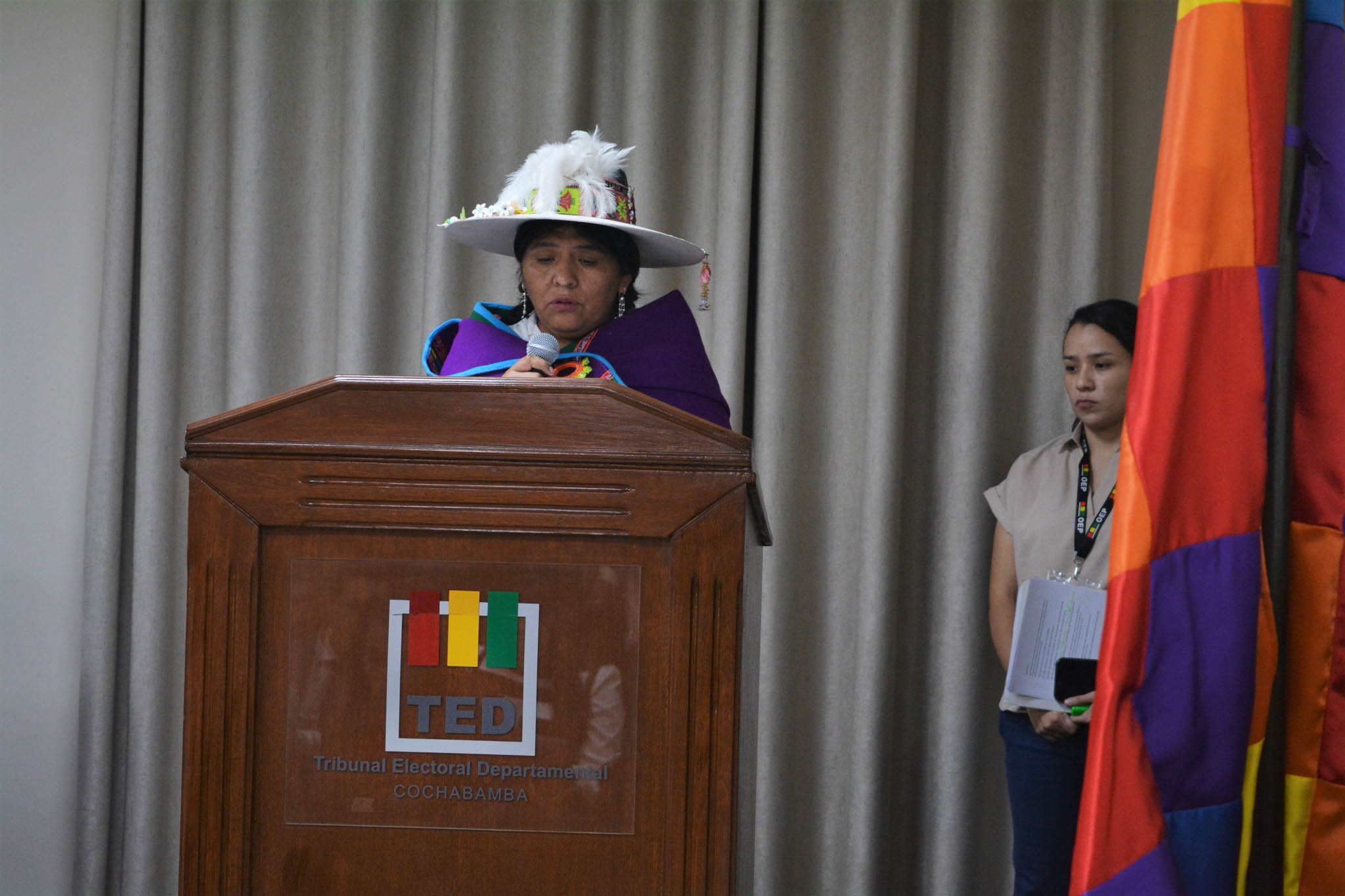 El evento fue inaugurado con palabras de bienvenida a cargo de la presidenta del TED Cochabamba, Ruth Pontejo, y continuó con la intervención de la vocal del TSE, Nelly Arista.