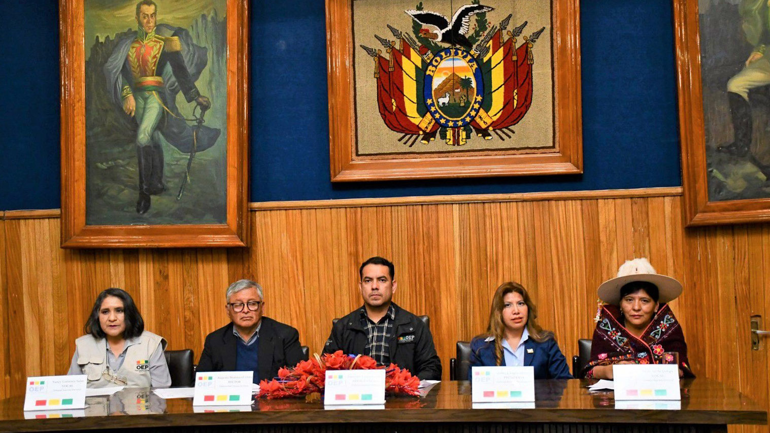 Izq. a Der: vocal del TSE, Nancy Gutiérrez; rector de la UTO, Augusto Medinaceli; presidente en ejercicio del TSE, Francisco Vargas, presidenta del TED Oruro, Zelma López y vocal del TSE, Nelly Arista.