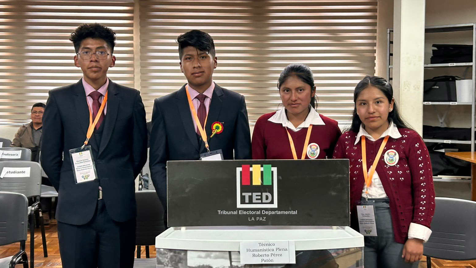 El departamento de La Paz tendrá como representante a la unidad educativa Técnico Humanístico Plena Roberto Pérez Patón en la fase semifinal nacional de las Olimpiadas de la Democracia Intercultural. Este miércoles culminó la fase departamental y el presidente del Tribunal Electoral Departamental (TED) de La Paz, Sabino Chávez, expresó su deseo de que el equipo llegue a la final.