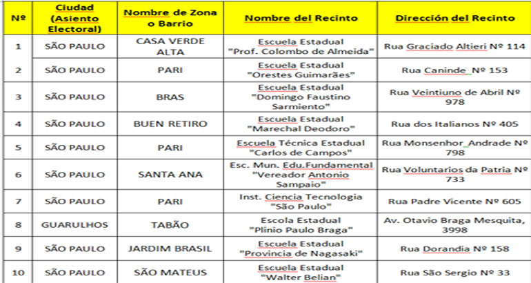 Recintos Electorales en São Paulo.
