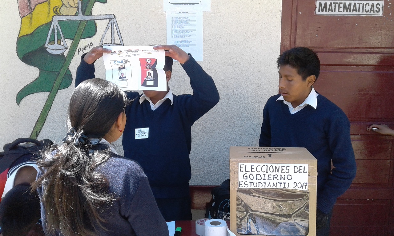 Las y los estudiantes de las unidades educativas “Narciso Campero”, ciclo primario, y “Germán Busch”, secundario, del municipio de Huachacalla en Oruro, eligieron este 11 de abril a sus gobiernos estudiantiles a través del voto secreto y universal.
