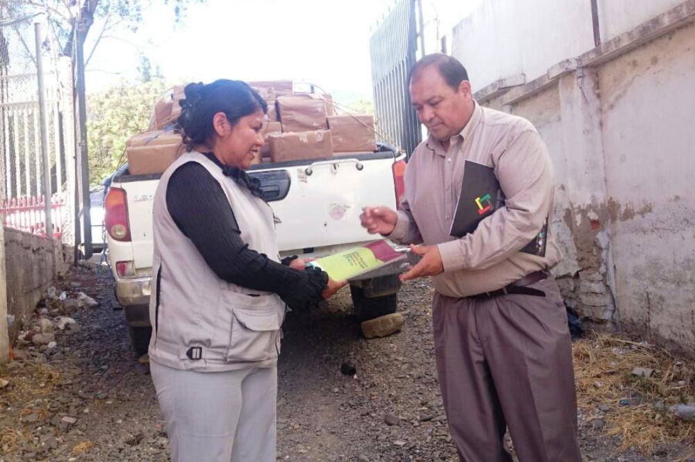 La Presidenta del TED Cochabamba, Betsabé Merma, entregó el material al Oficial Mayor de Vinto, Brito Palenque, para que estos sean distribuidos de acuerdo al plan de socialización diseñado por las autoridades municipales, y de esta forma lleguen a las y los habitantes para que asuman una decisión informada, aseveró.