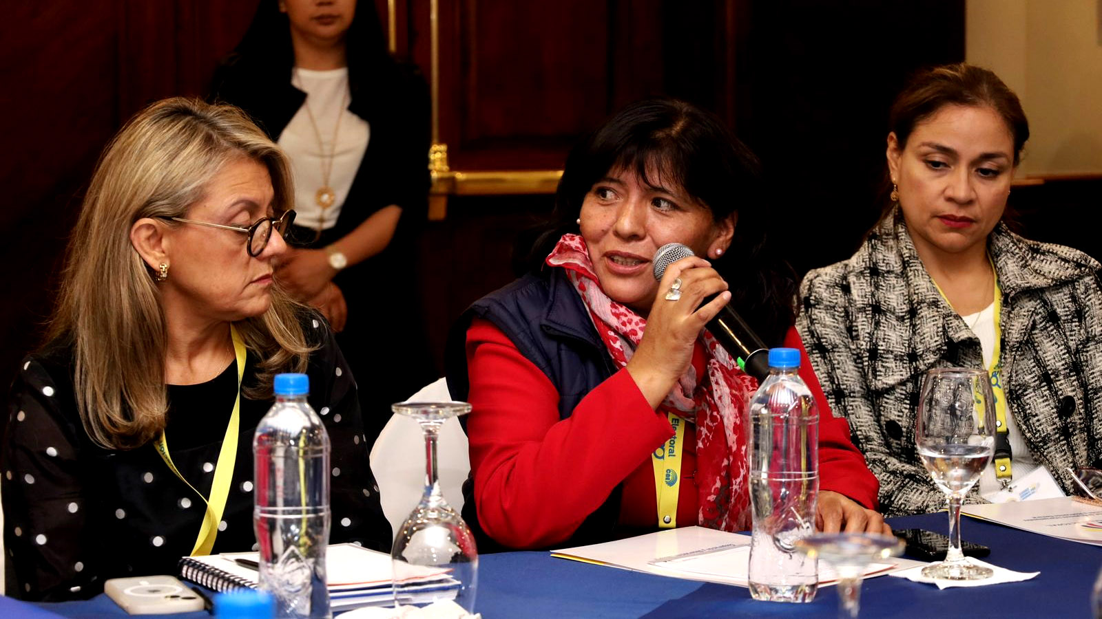 (Lado derecho) la vocal de TSE, Nelly Arista junto a sus homólogos de la misión de observación UNIORE, en Ecuador.