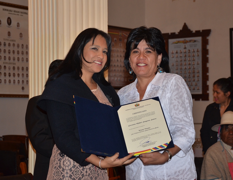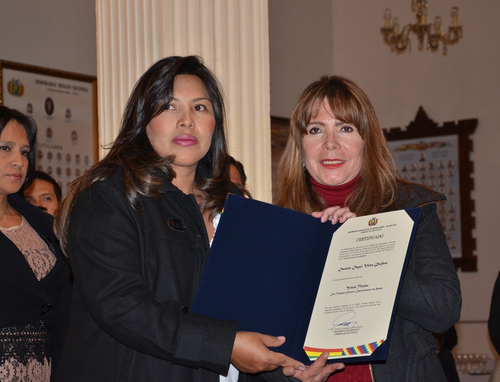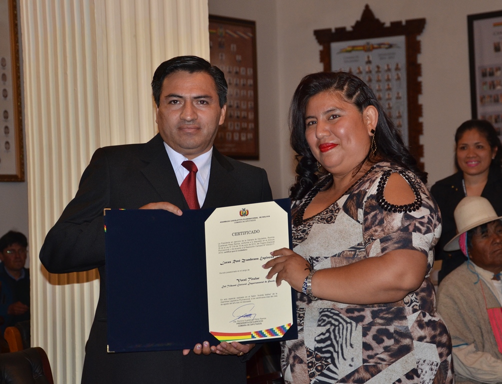 Giovanna Mabel Sangüeza Suárez, Daniela Deysi Vélez Quijhua y René Lucas Zambrana Espinoza fueron posesionados este martes como las y los nuevos vocales titulares del Tribunal Electoral Departamental (TED) de Pando, y su primer reto es asumir la administración de las Elecciones Judiciales 2017.