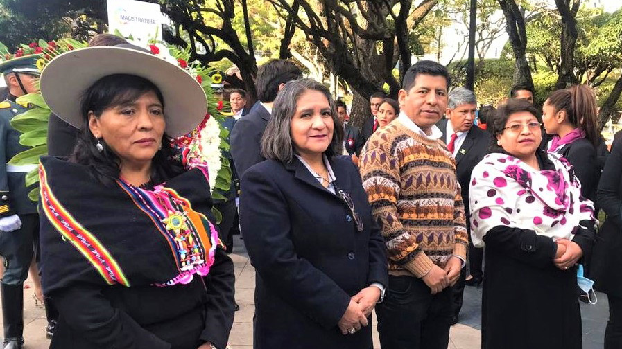 Los vocales del Tribunal Supremo Electoral (TSE) Tahuichi Tahuichi, Nancy Gutiérrez, Dina Chuquimia y Nelly Arista rindieron su homenaje a los 214 años de la gesta libertaria del 25 de mayo en el departamento de Chuquisaca, evento recordado como el primer grito libertario de América del Sur. Las autoridades electorales asistieron a distintos actos cívicos los días miércoles 24 y jueves 25.