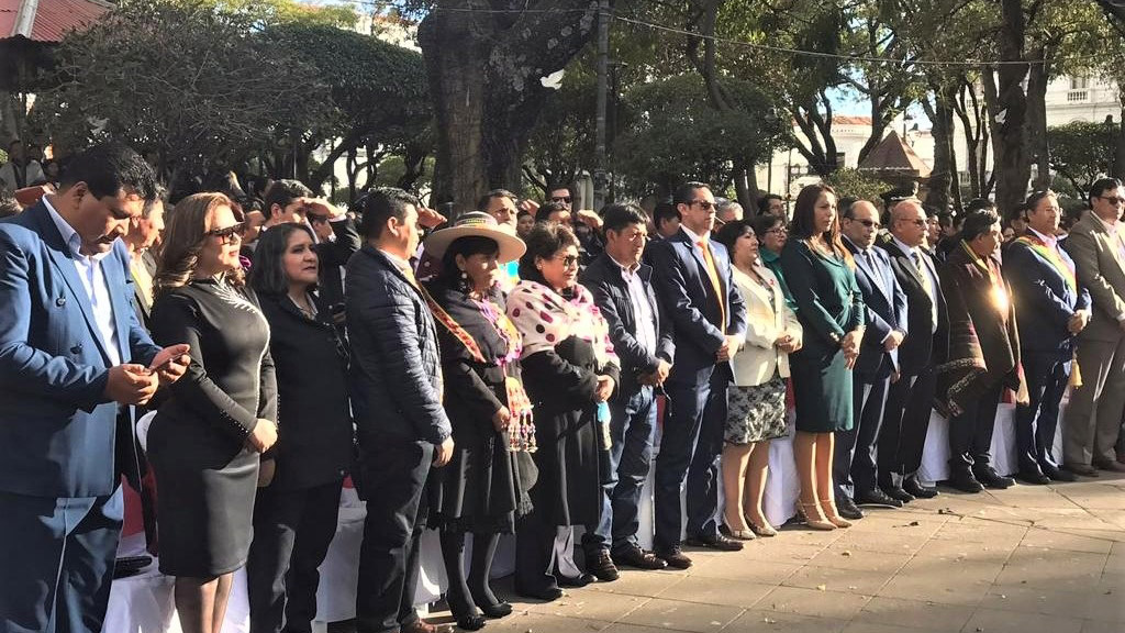 El miércoles en la Casa de la Libertad, la Asamblea Legislativa Departamental de Chuquisaca instaló la sesión de honor, el evento congregó a las principales autoridades de los órganos Ejecutivo, Legislativo, Judicial y Electoral del país, además de contar con la presencia del alto mando militar y representantes de distintas instituciones nacionales y locales.