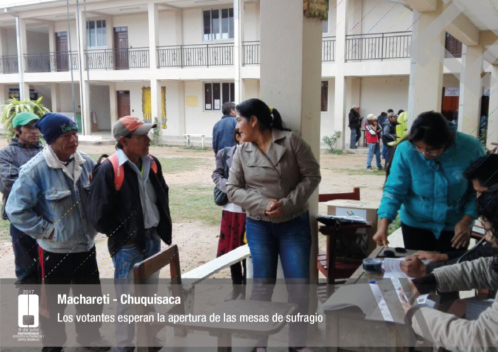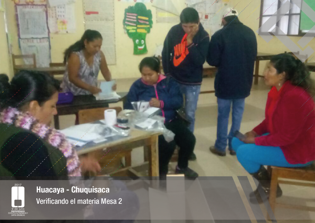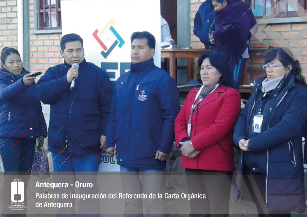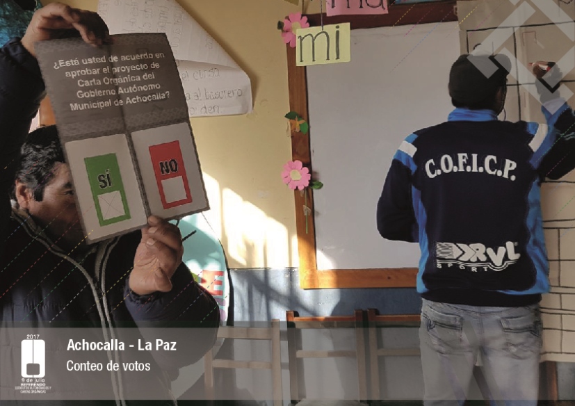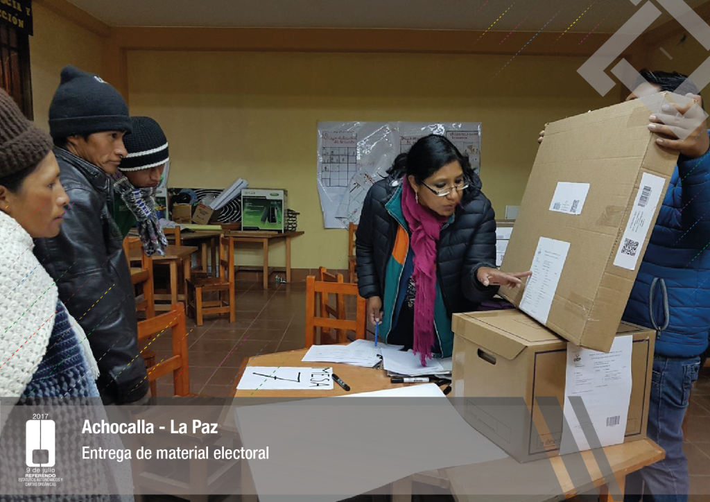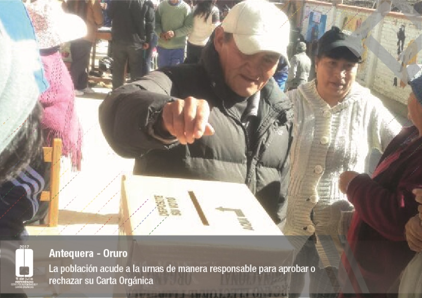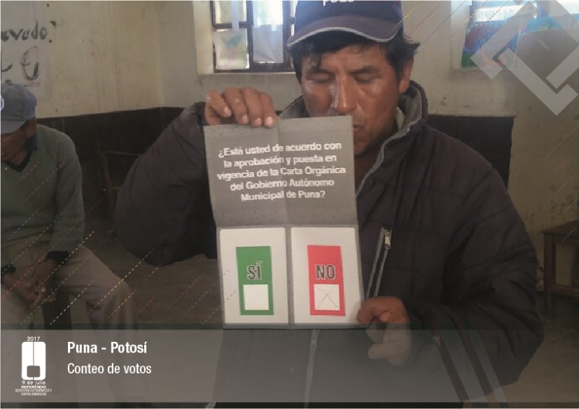Por su parte, el vocal del Tribunal Supremo Electoral, Jose Luis Exeni, explicó que “este es un evento importante por dos razones: primero, porque es una reafirmación de la democracia directa y participativa a través del referendo para la decisión directa y sin ningún intermediario, en este caso un tema fundamental que es el documento autonómico; y segundo, que es el tema fundamental e importante de impulso del proceso autonómico en el país”.