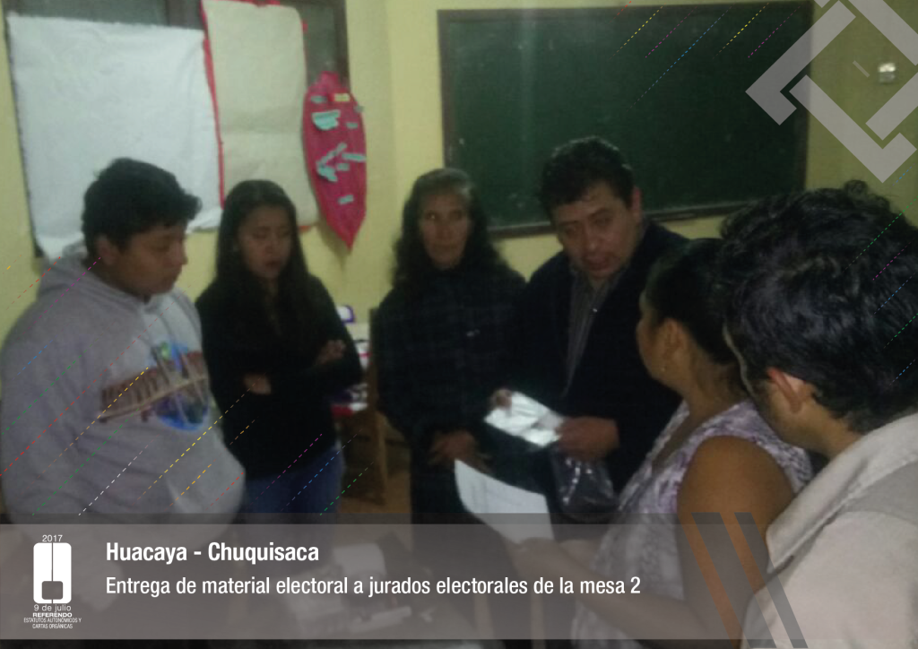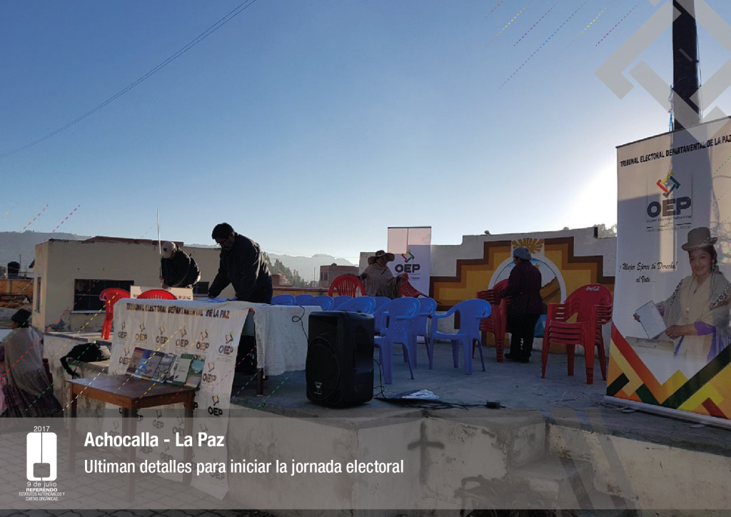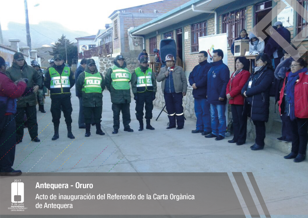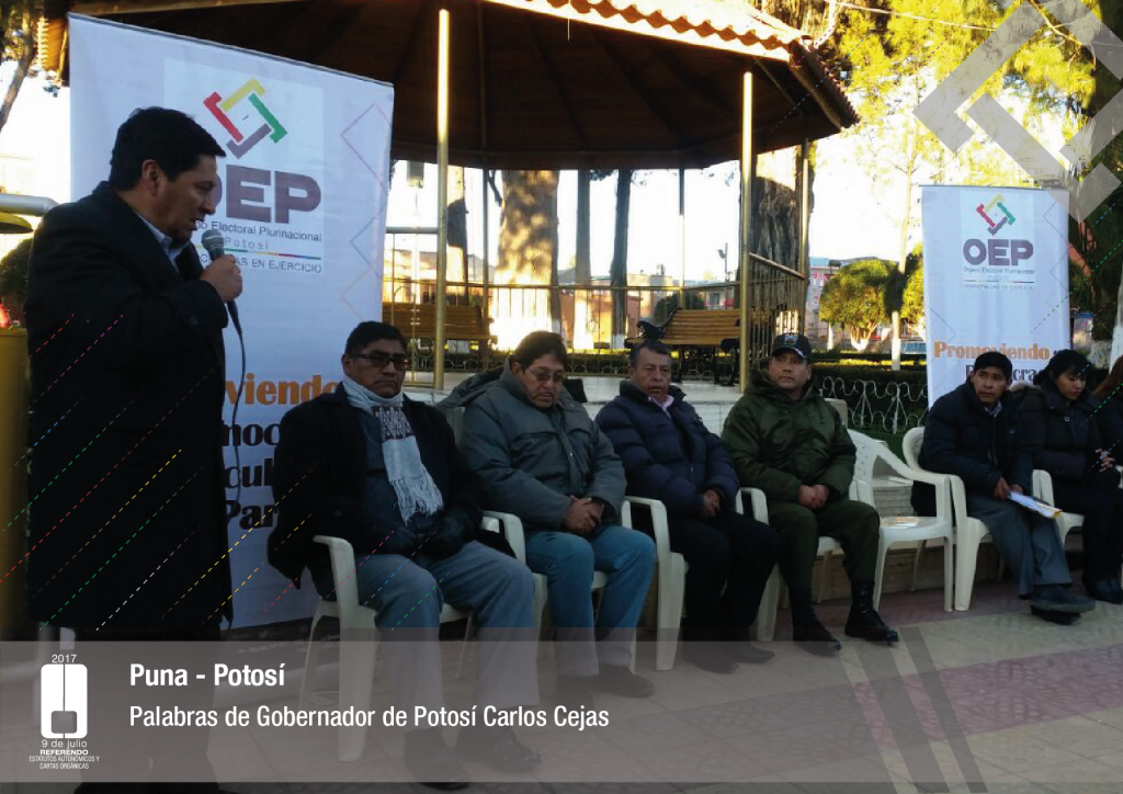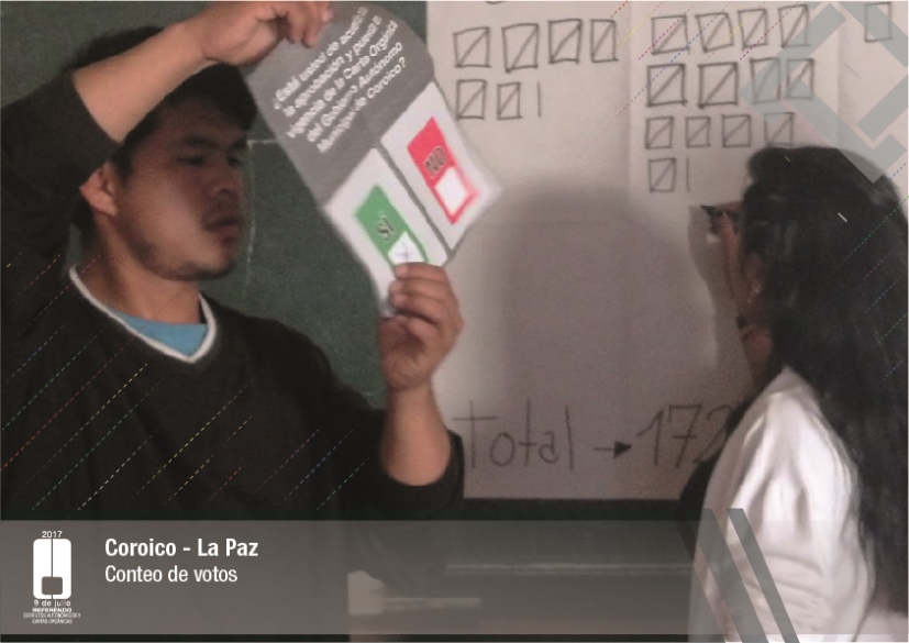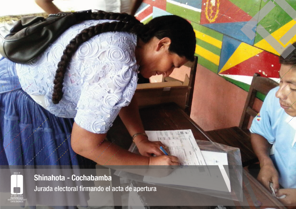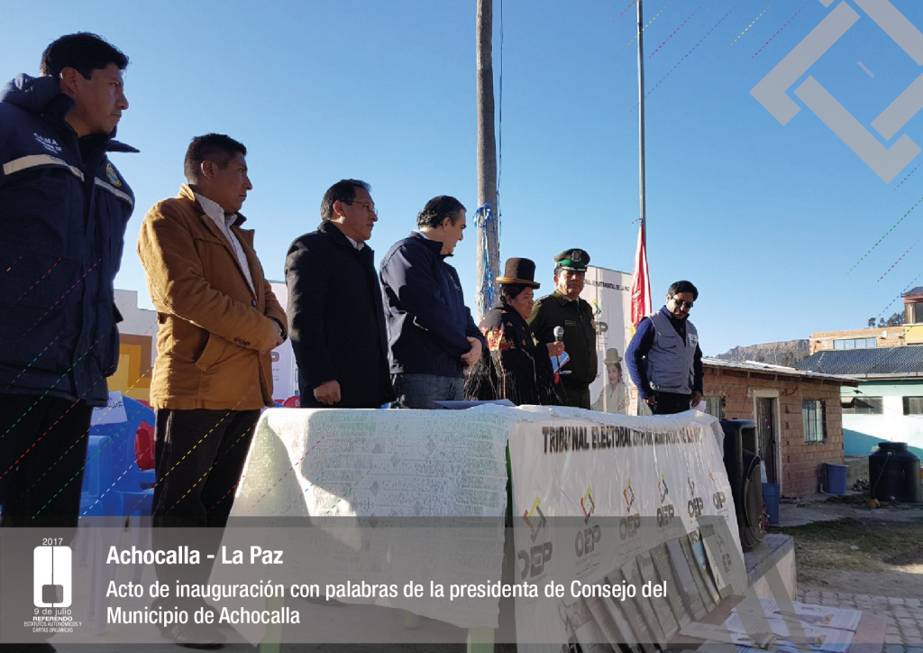 Por su parte, el vocal del Tribunal Supremo Electoral, Jose Luis Exeni, explicó que “este es un evento importante por dos razones: primero, porque es una reafirmación de la democracia directa y participativa a través del referendo para la decisión directa y sin ningún intermediario, en este caso un tema fundamental que es el documento autonómico; y segundo, que es el tema fundamental e importante de impulso del proceso autonómico en el país”.