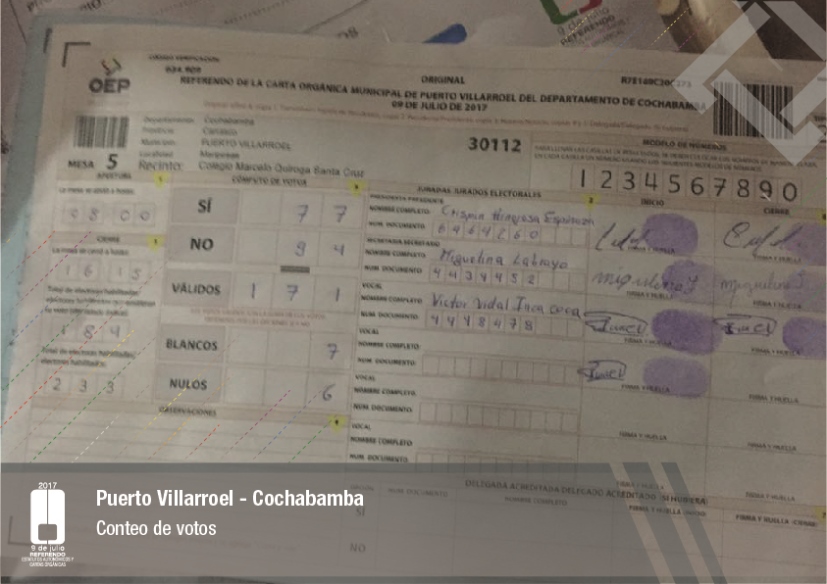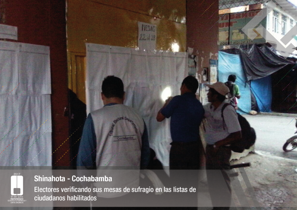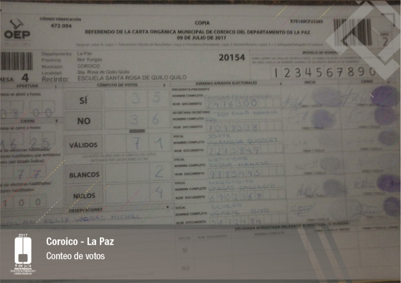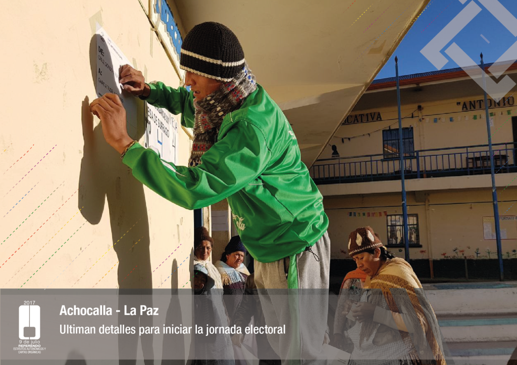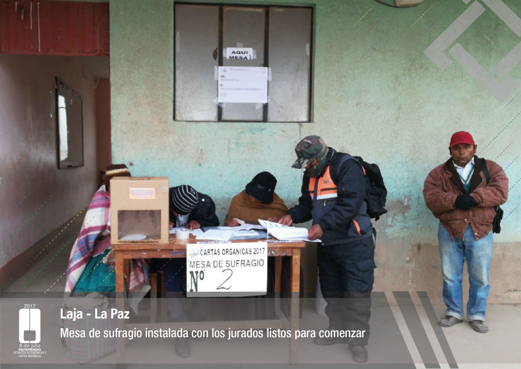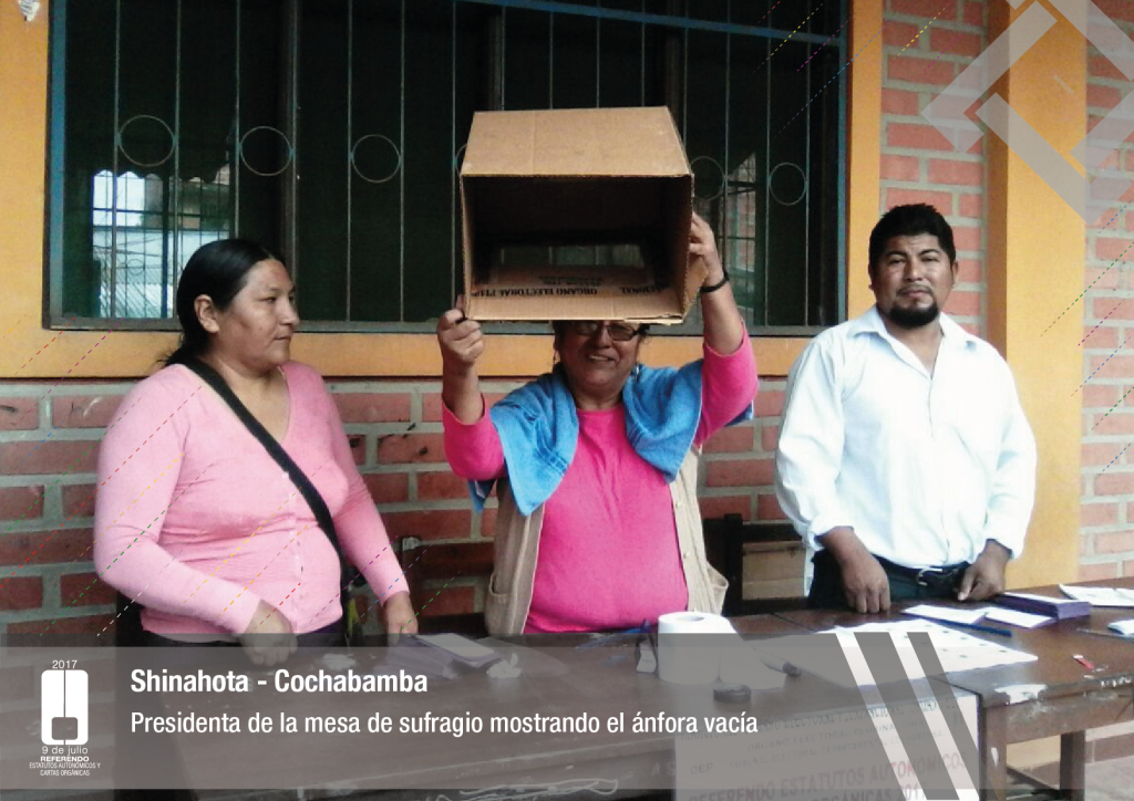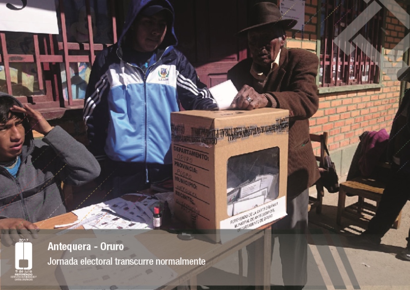 Por su parte, el vocal del Tribunal Supremo Electoral, Jose Luis Exeni, explicó que “este es un evento importante por dos razones: primero, porque es una reafirmación de la democracia directa y participativa a través del referendo para la decisión directa y sin ningún intermediario, en este caso un tema fundamental que es el documento autonómico; y segundo, que es el tema fundamental e importante de impulso del proceso autonómico en el país”.