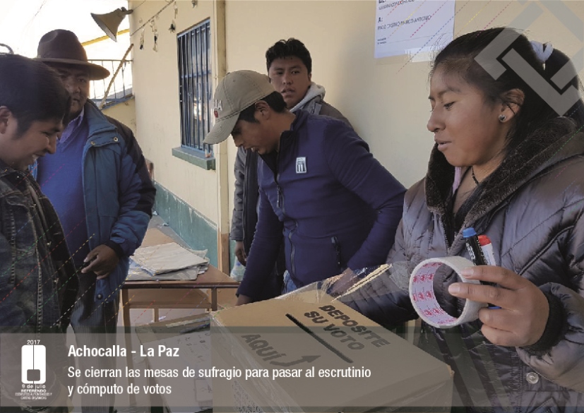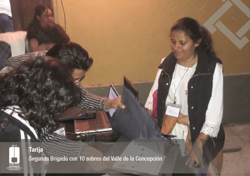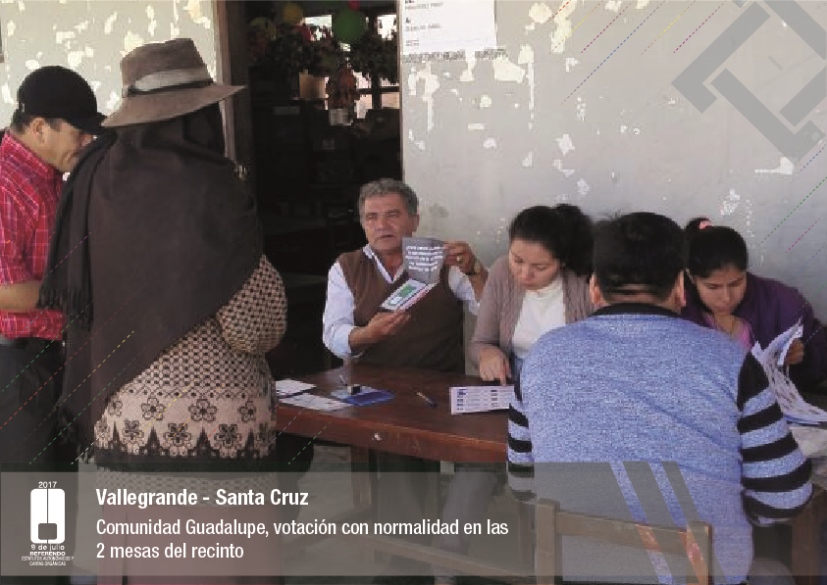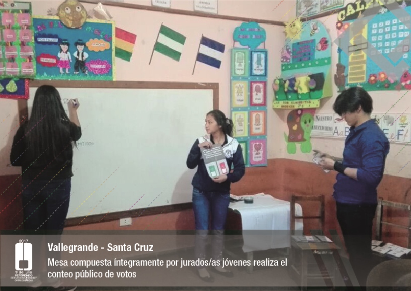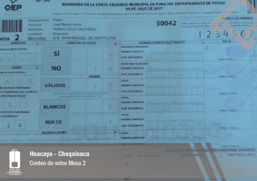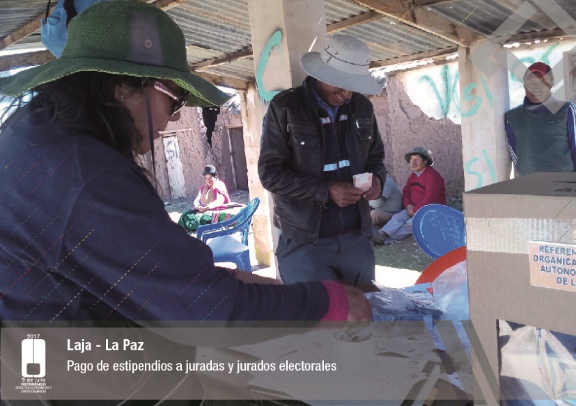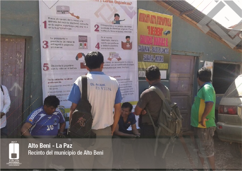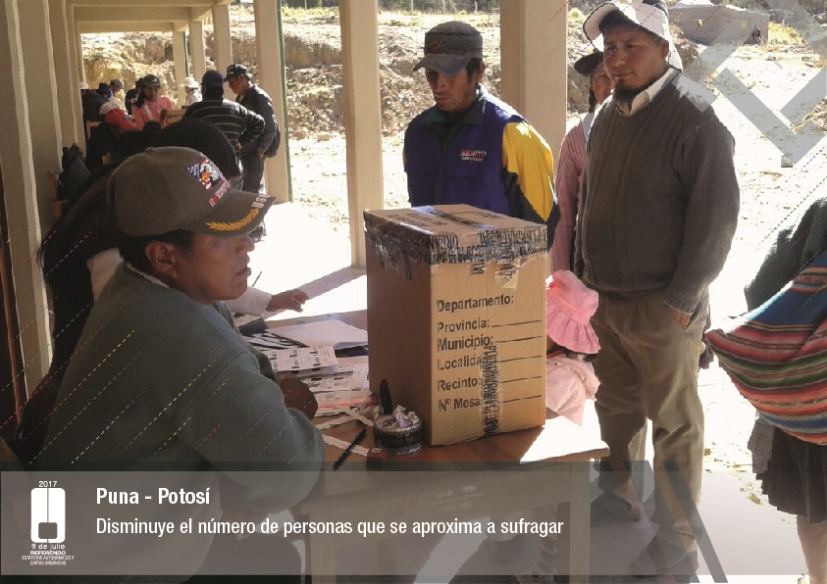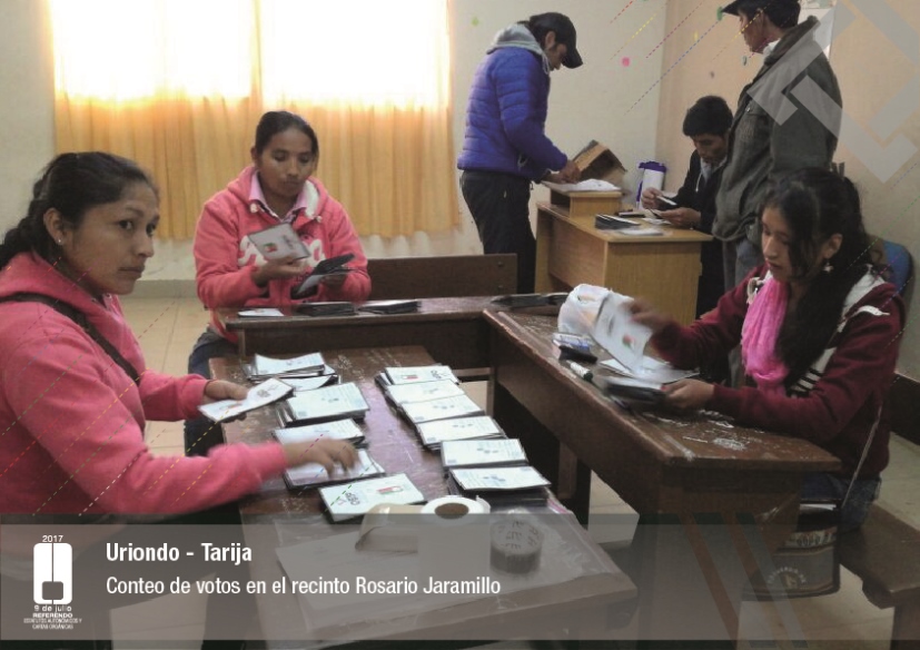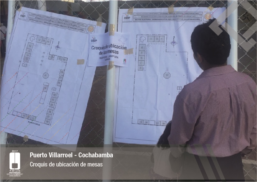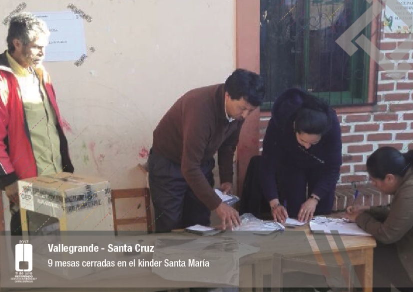 Es así que en Huacaya son 57 jurados para las 9 mesas; en Macharetí 156 para las 26 mesas; en Vallegrande 354 para 59 mesas; en Postrervalle, 42 para siete mesas; en Laja 270 para 45 mesas; en Achocalla 420 para 70 mesas; en Alto Beni, 168 para 28 mesas; Coroico, 300 para 50 mesas; en Shinahota, 396 para 66 mesas; en Sicaya 48 para ocho mesas; en Puerto Villarroel, 840 para 140 mesas; en Antequera 48 para ocho mesas; en Puna 330 para 55 mesas; y en Uriondo, 294 para 49 mesas.