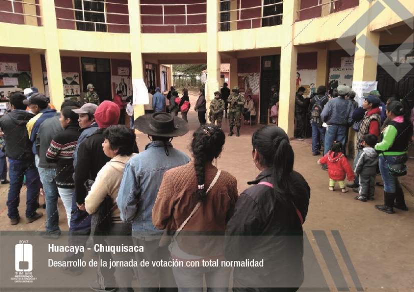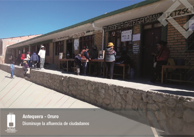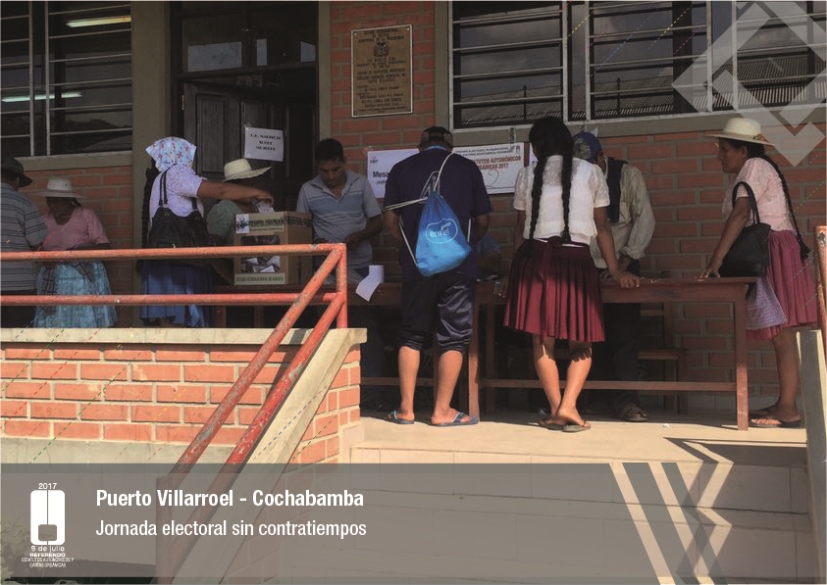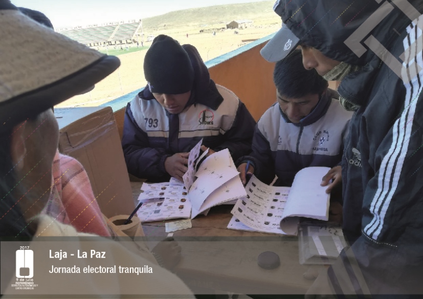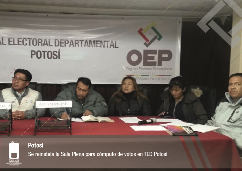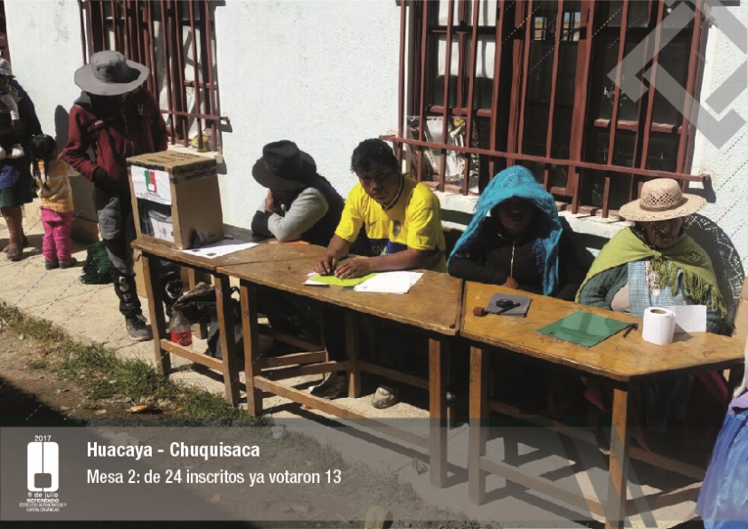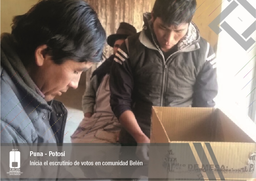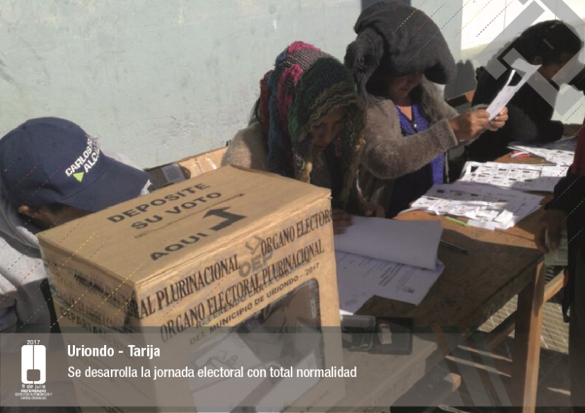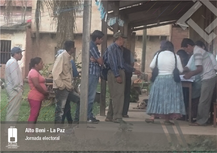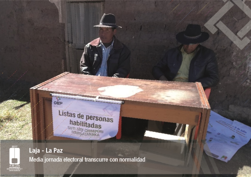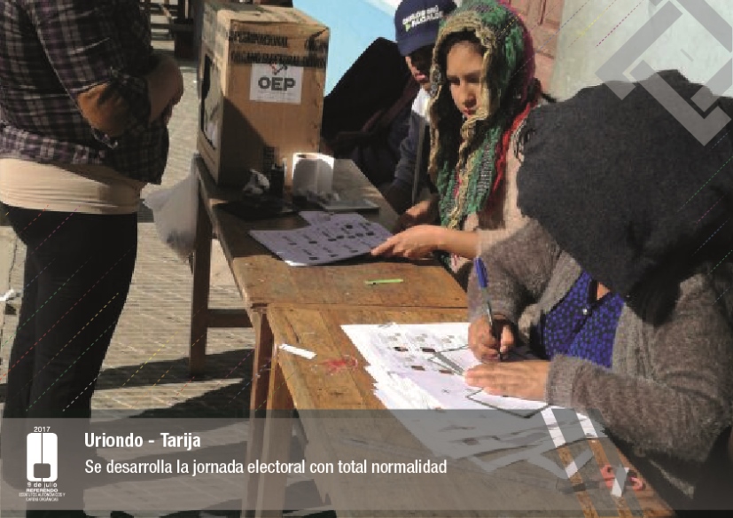 Es así que en Huacaya son 57 jurados para las 9 mesas; en Macharetí 156 para las 26 mesas; en Vallegrande 354 para 59 mesas; en Postrervalle, 42 para siete mesas; en Laja 270 para 45 mesas; en Achocalla 420 para 70 mesas; en Alto Beni, 168 para 28 mesas; Coroico, 300 para 50 mesas; en Shinahota, 396 para 66 mesas; en Sicaya 48 para ocho mesas; en Puerto Villarroel, 840 para 140 mesas; en Antequera 48 para ocho mesas; en Puna 330 para 55 mesas; y en Uriondo, 294 para 49 mesas.